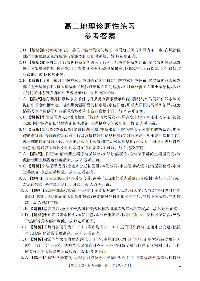 高二地理答案--山东省济宁市2025-2026学年高二上学期1月诊断性练习月考