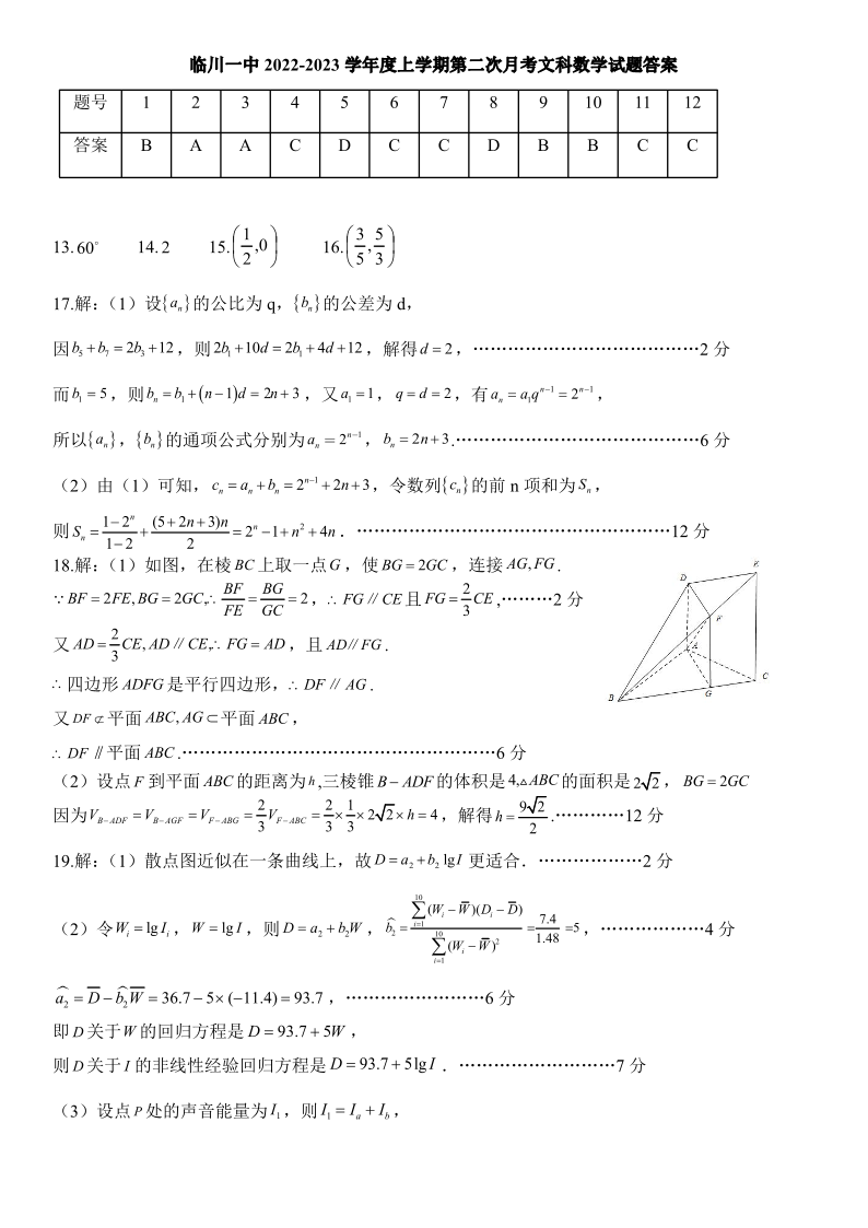 高三文数答案--江西省临川第一中学高三上学期10月期中