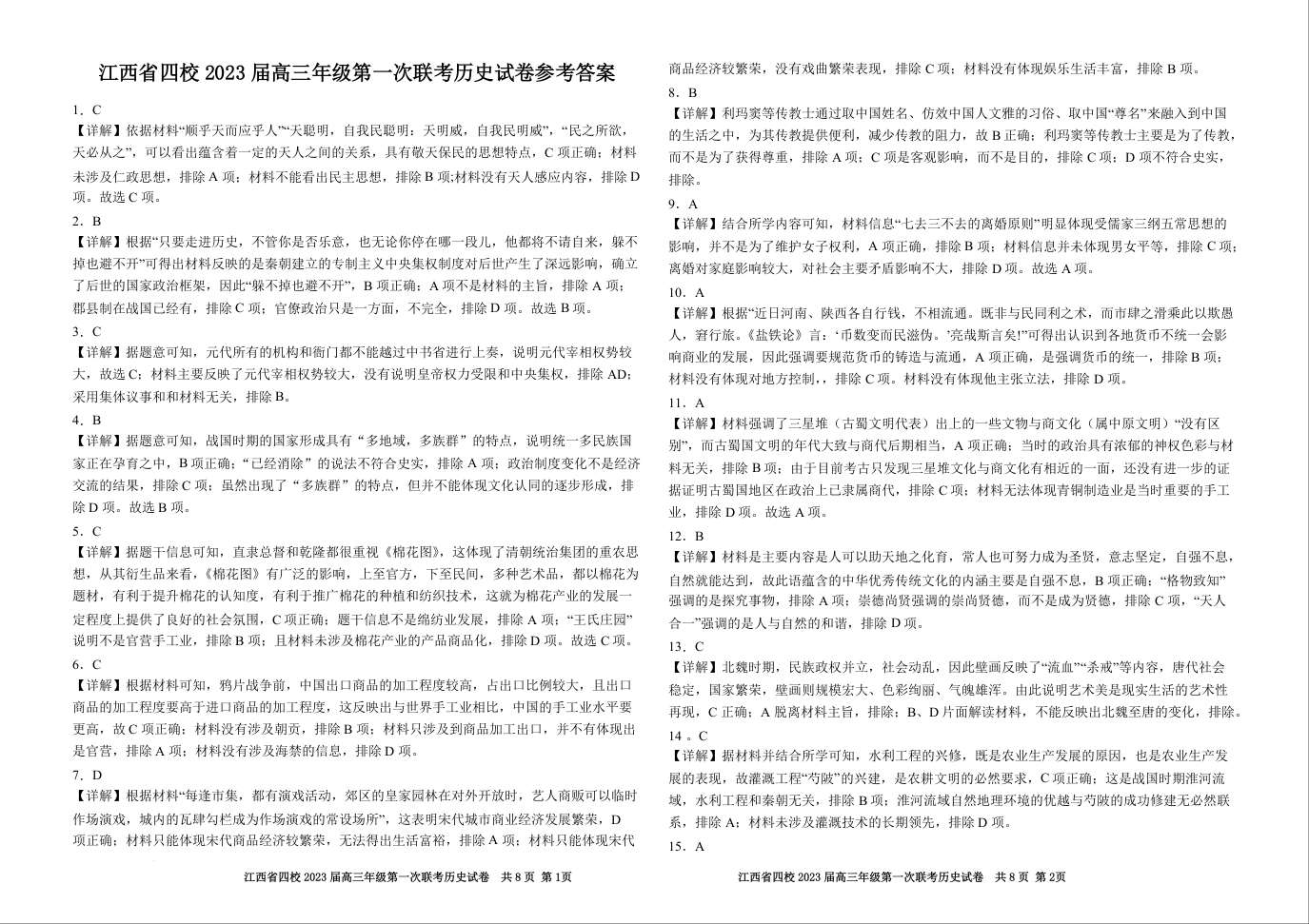 高三历史答案--江西省上饶市、景德镇市六校2023届高三上学期10月联考