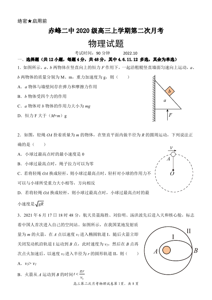 高三物理--内蒙古赤峰二中高三上学期10月第二次月考