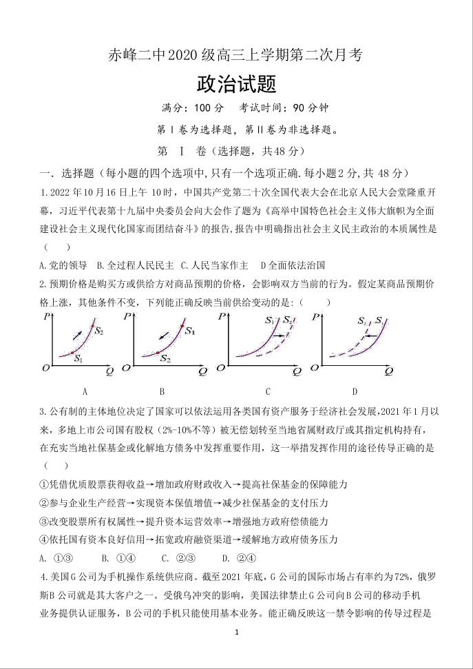 高三政治--内蒙古赤峰二中高三上学期10月第二次月考