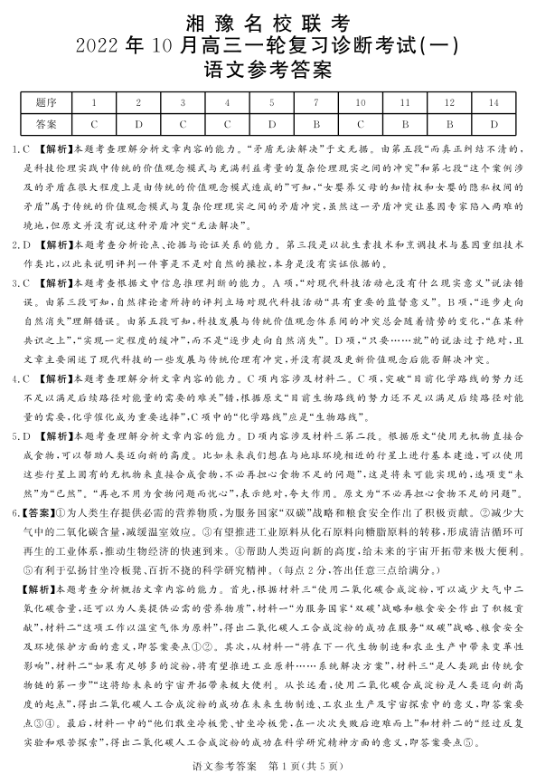 高三语文答案--湘豫名校联考高三一轮复习诊断考试(一)(适用于新高考全国I卷)
