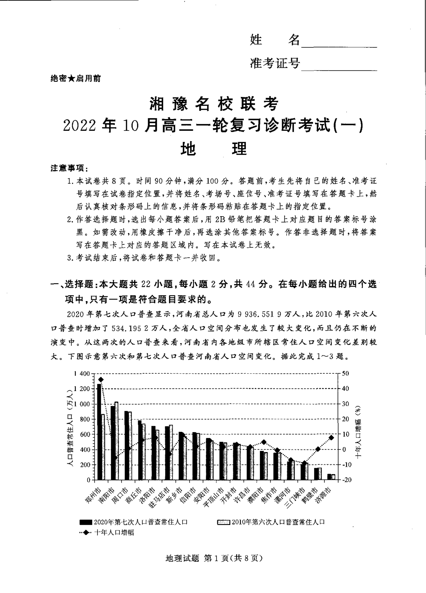 高三地理--湘豫名校联考高三一轮复习诊断考试(一)(适用于新高考全国I卷)