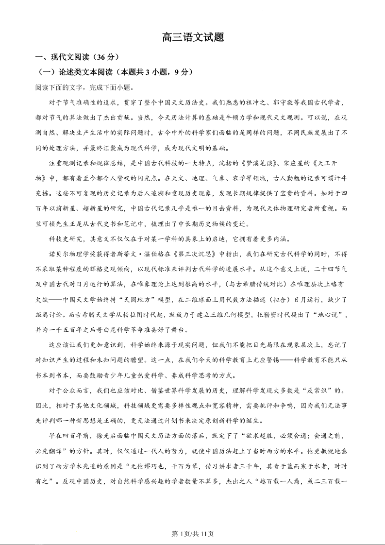 高三语文(原卷版)--山西省忻州市2022-2023学年高三上学期第二次联考