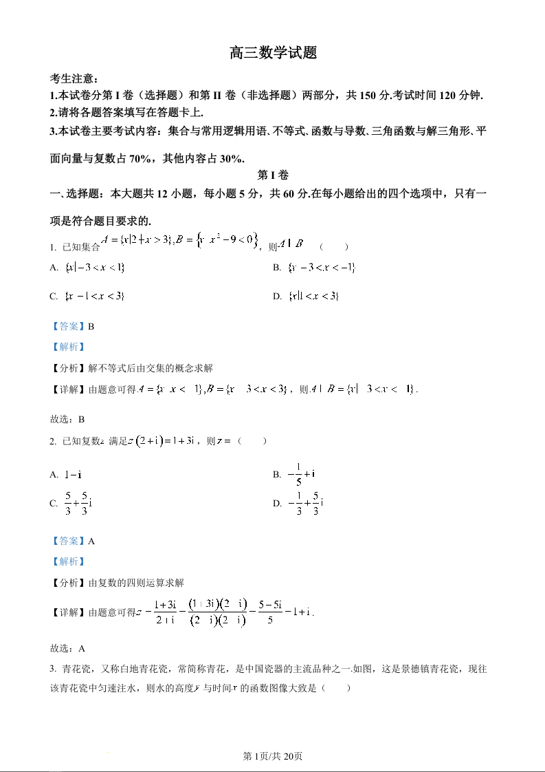 高三数学(解析版)--山西省忻州市2022-2023学年高三上学期第二次联考