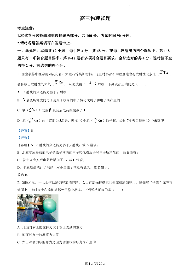 高三物理(解析版)--山西省忻州市2022-2023学年高三上学期第二次联考