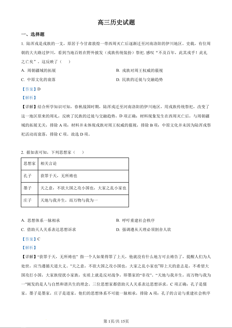 高三历史(解析版)--山西省忻州市2022-2023学年高三上学期第二次联考