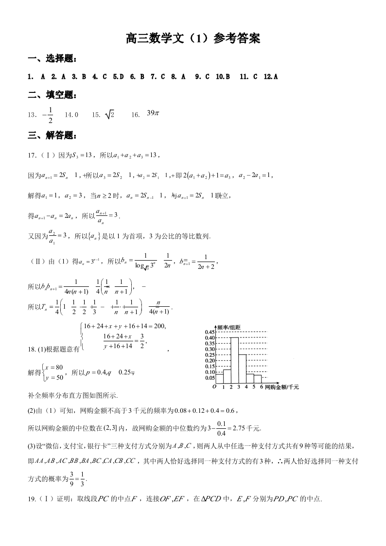高三文数答案--陕西省西安市西北工业大学附属中学2022-2023学年高三上学期第一次适应性训练