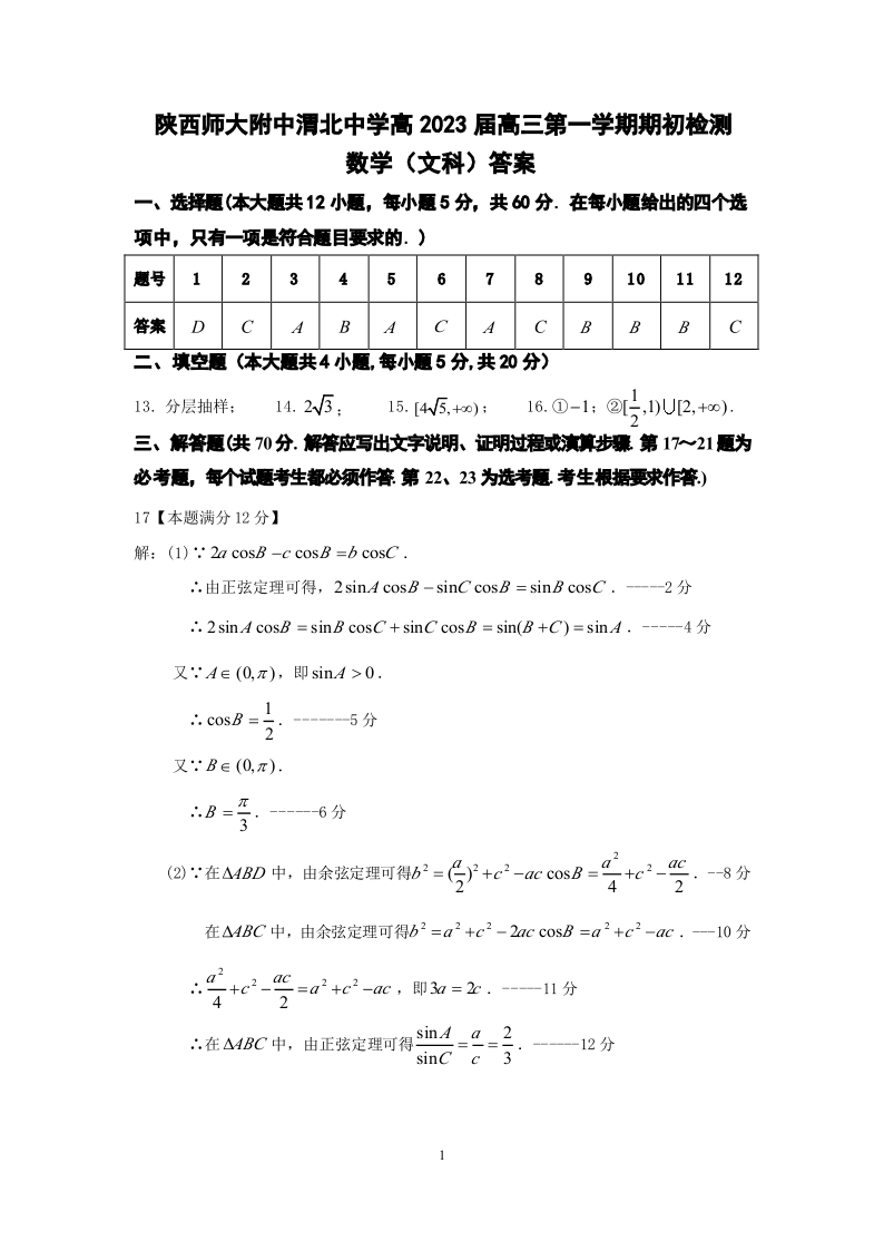 高三数学(文)答案--陕西师范大学附属中学、渭北中学等2023高三上学期期初检测