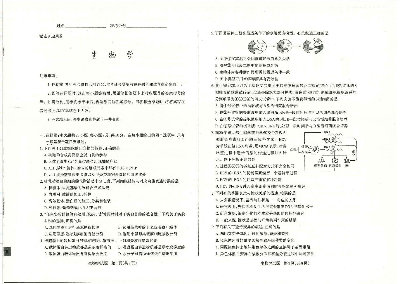 高三生物--山西省运城市2023高三年级入学新生教学质量监测考试
