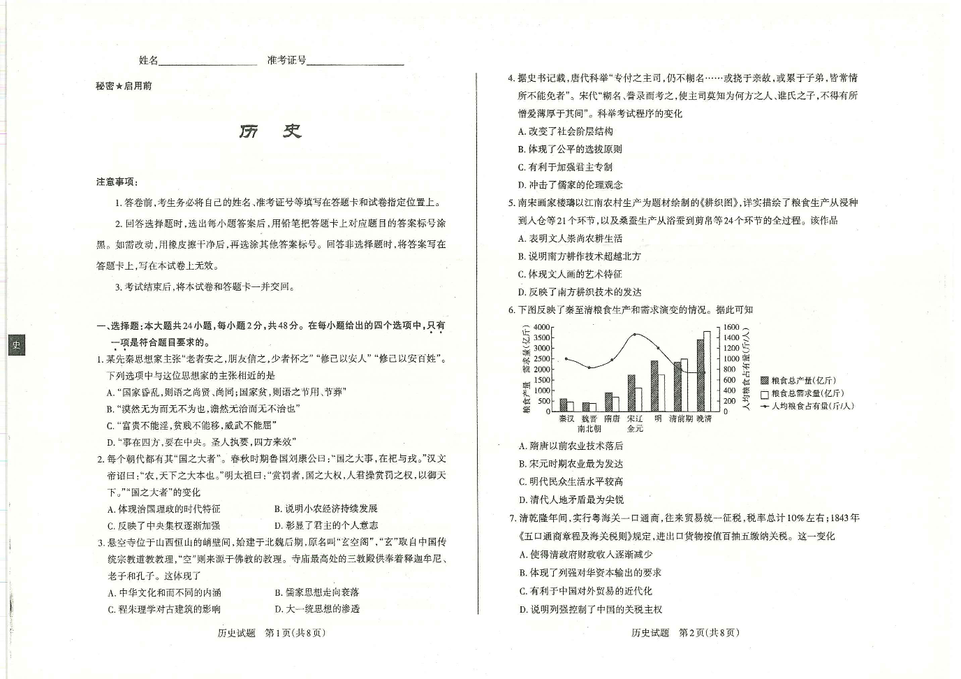 高三历史--山西省运城市2023高三年级入学新生教学质量监测考试