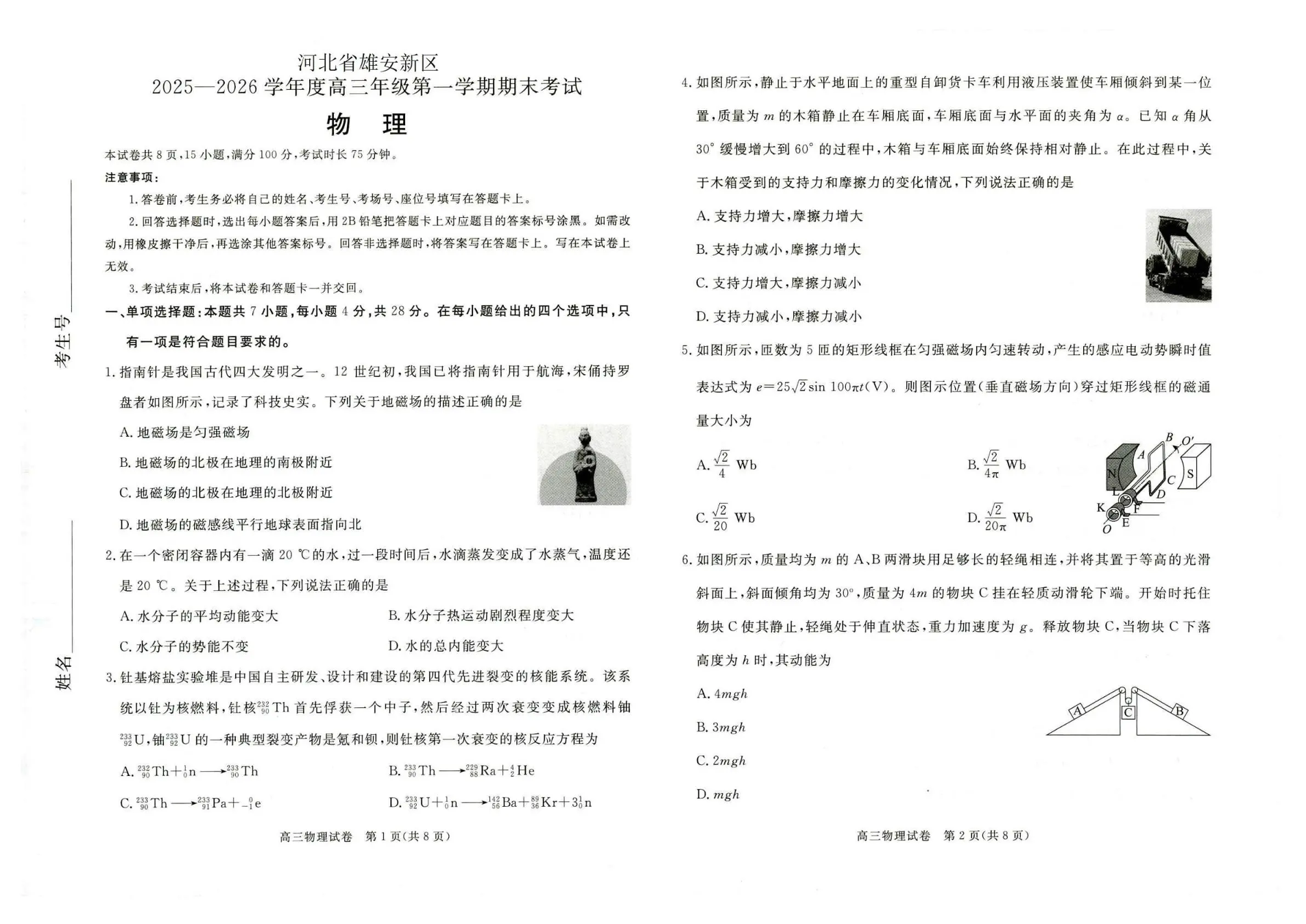 高三物理--河北省雄安新区202届高三年级第一学期1月期末考试