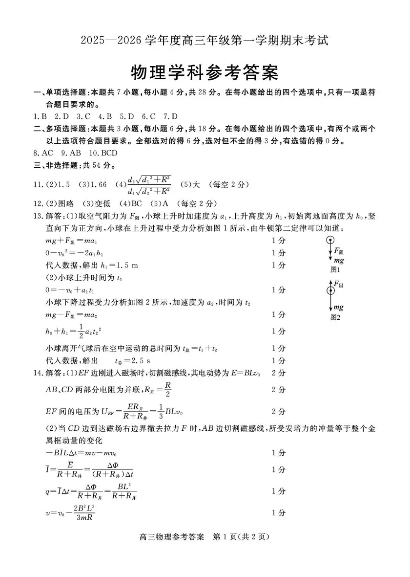 高三物理答案--河北省雄安新区202届高三年级第一学期1月期末考试