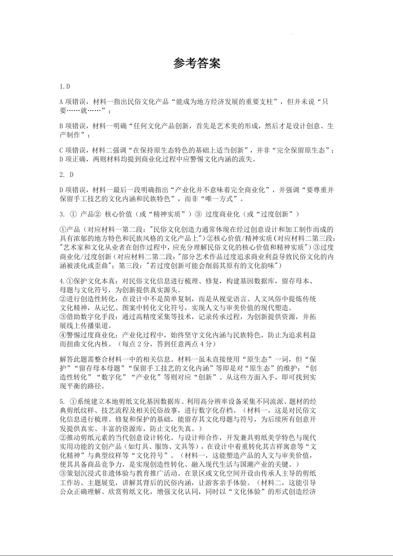 高三语文答案--江西省五市十校协作体2026届高三上学期1月期末阶段性作业