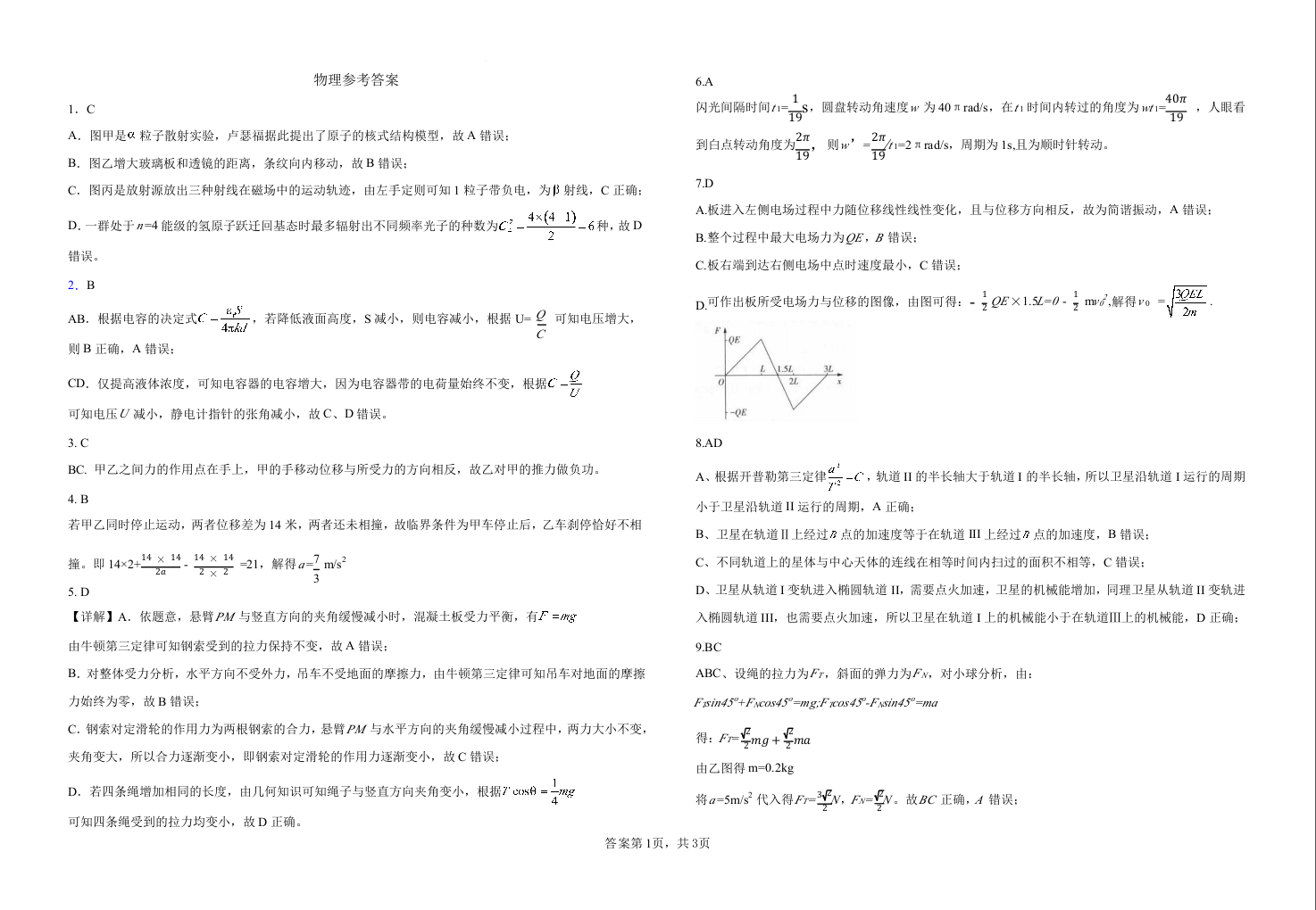 高三物理答案--江西省五市十校协作体2026届高三上学期1月期末阶段性作业