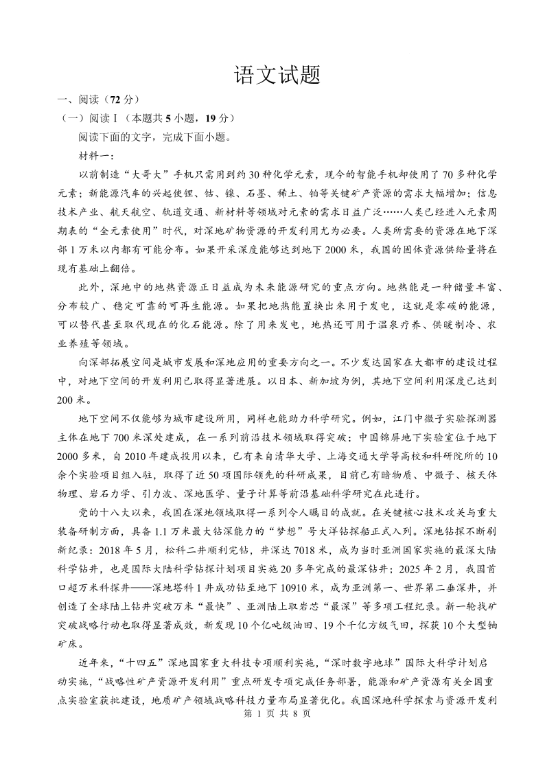 高三语文--四川省绵阳中学2026届高三第二次模拟考试