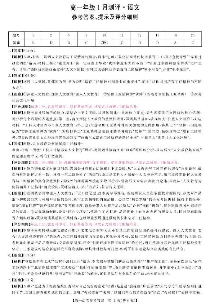 高一语文答案--河南省新未来2025-2026学年高一上学期1月测评