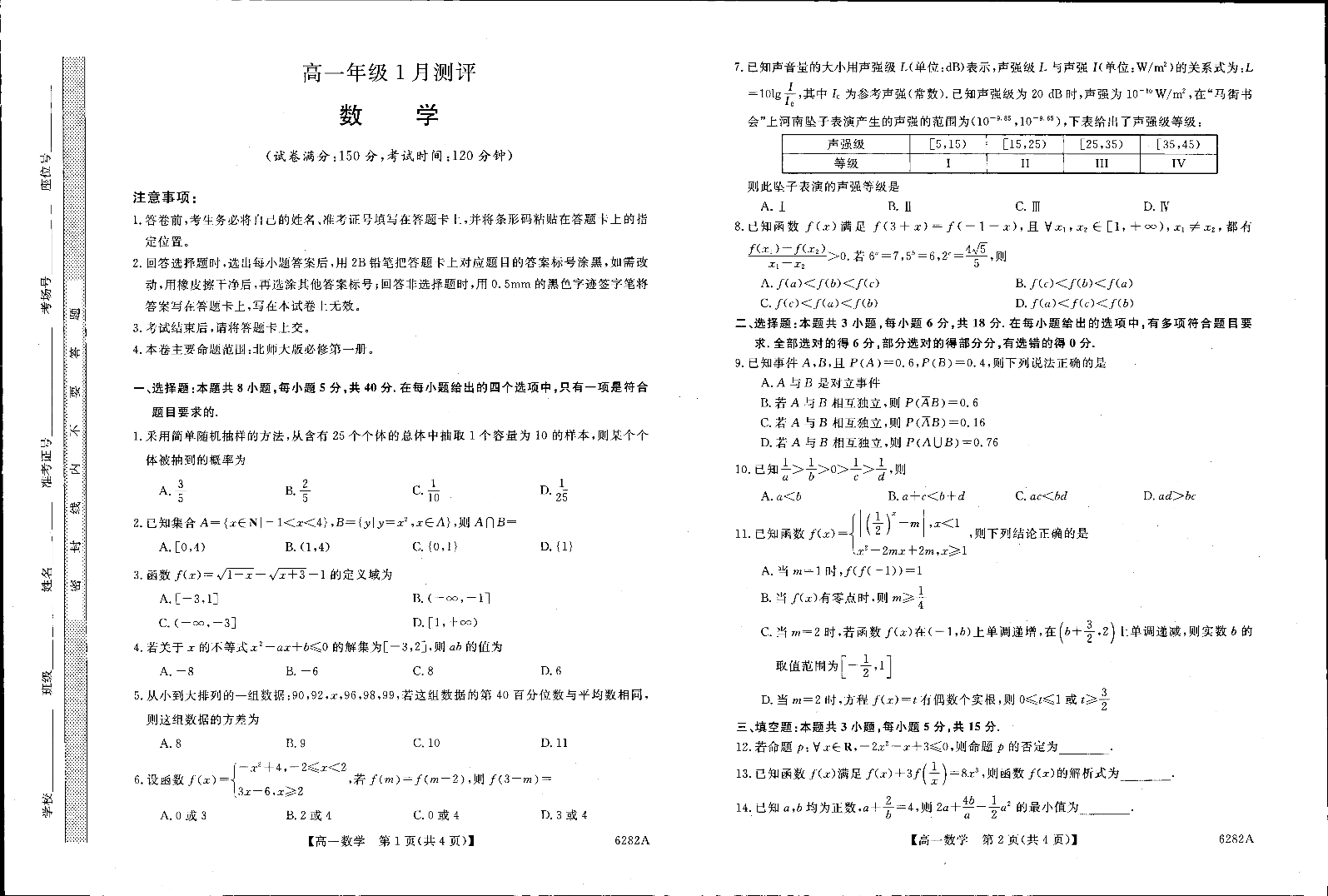 高一数学--河南省新未来2025-2026学年高一上学期1月测评(北师大版)