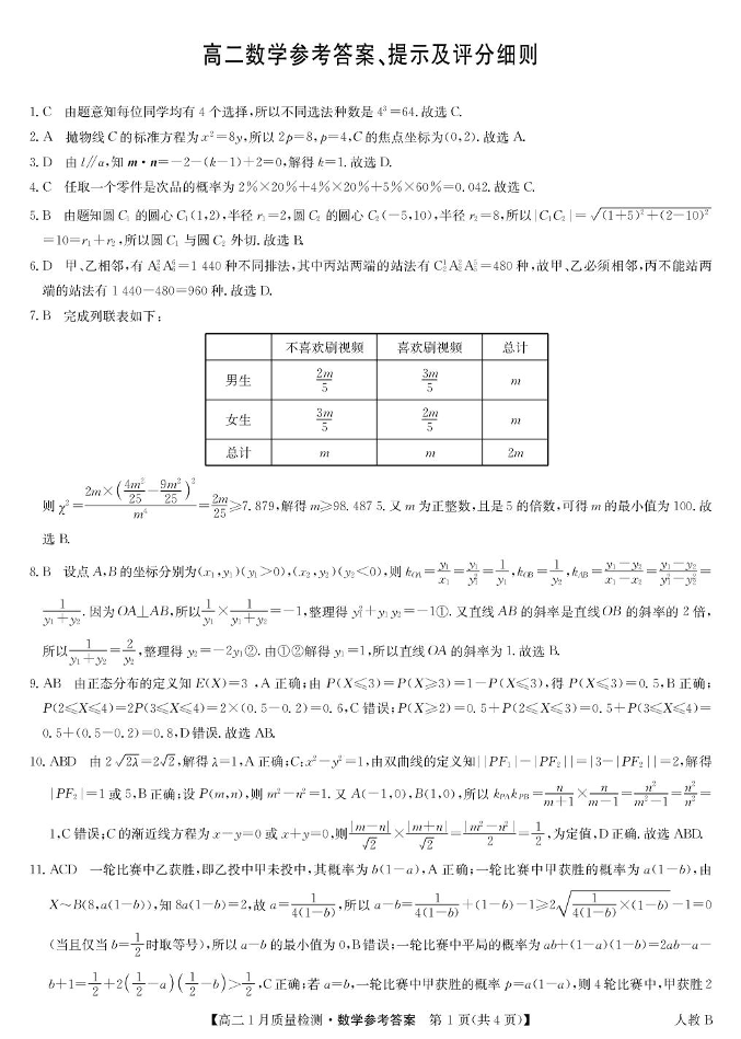 高二数学答案(人教B)--江西省多校联考2025-2026学年高二上学期1月期末联考