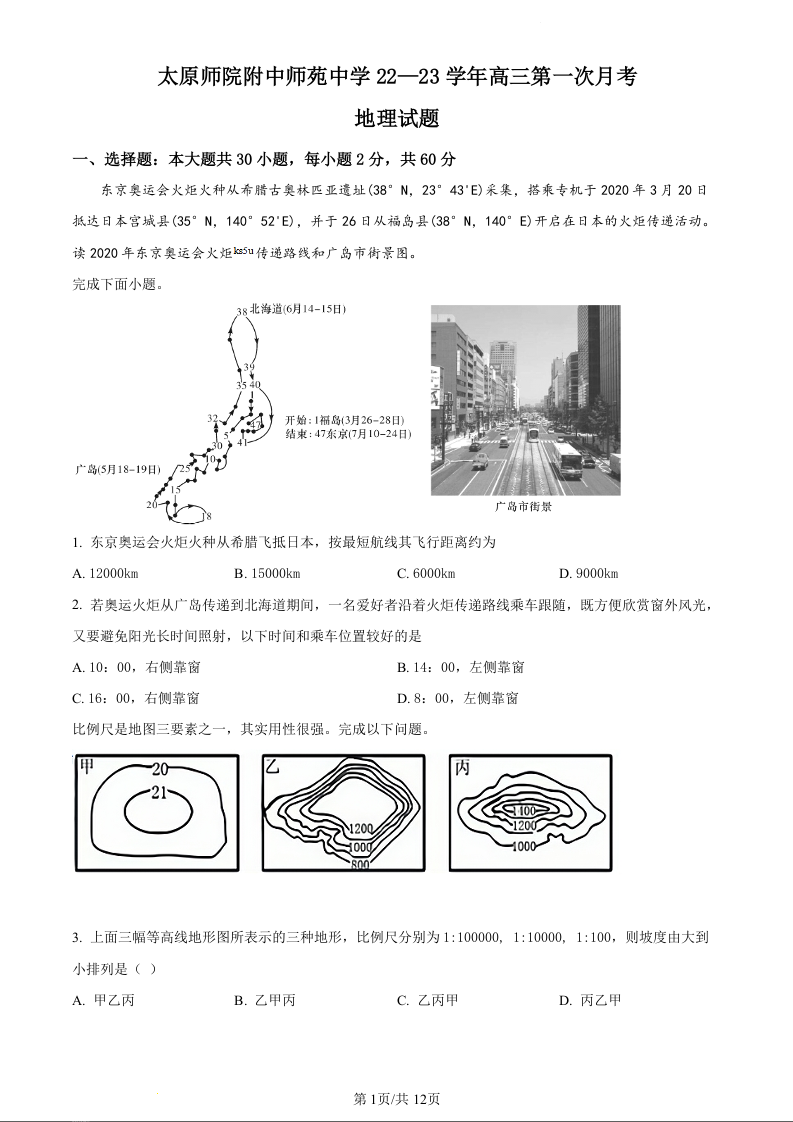 高三地理(原卷版)--山西省太原师范学院附属中学23届高三上学期第一次月考