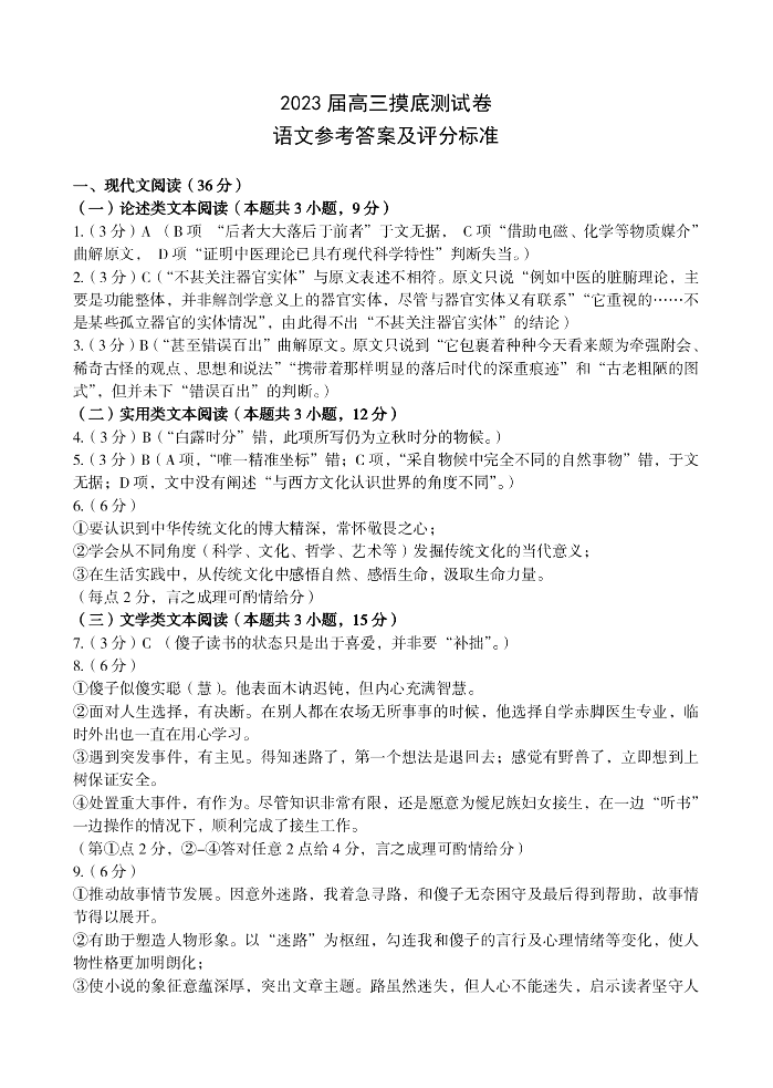 高三语文答案--江西省南昌市2023届高三摸底测试(零模)