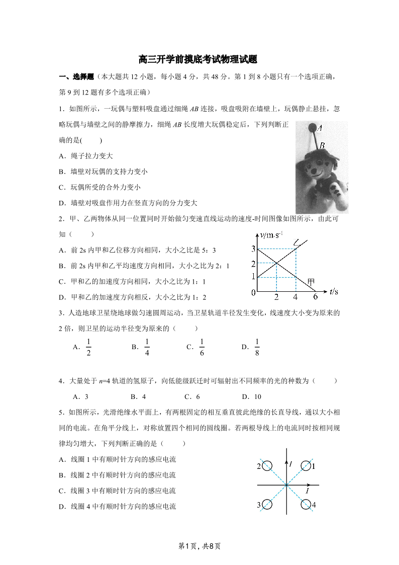 高三物理--江西省南昌市2023届高三摸底测试(零模)