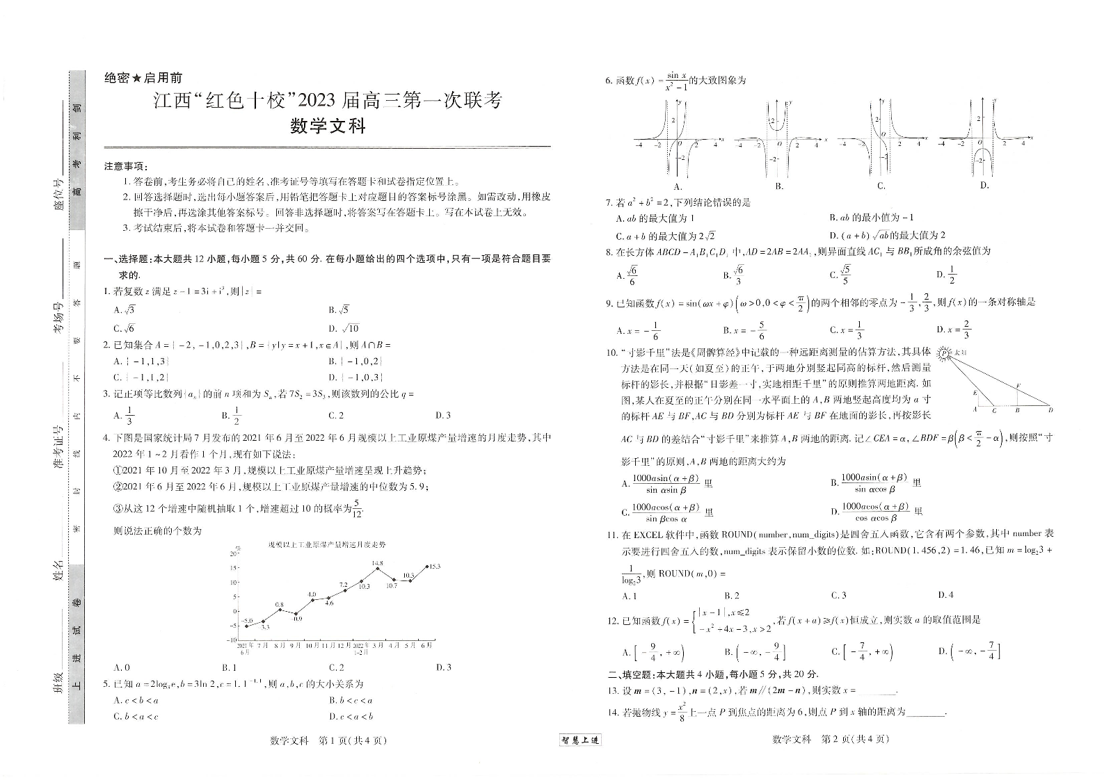 高三文数--江西省“红色十校”2023届高三上学期第一次联考