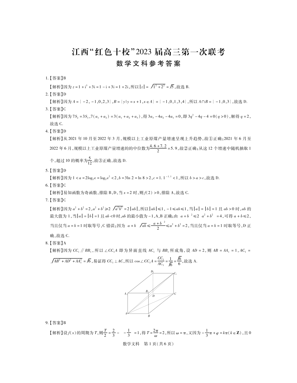 高三文数答案--江西省“红色十校”2023届高三上学期第一次联考