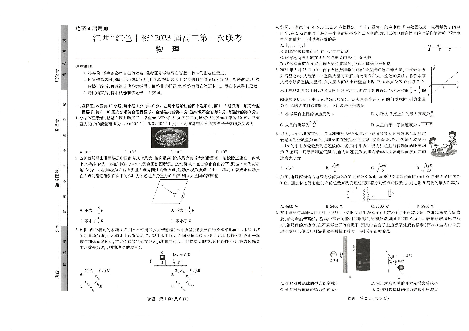 高三物理--江西省“红色十校”2023届高三上学期第一次联考