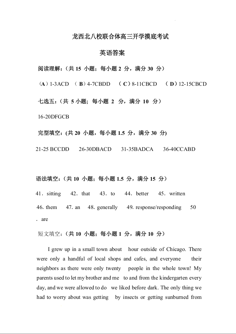 高三英语答案--黑龙江省龙西北八校联合体2023高三上学期开学考