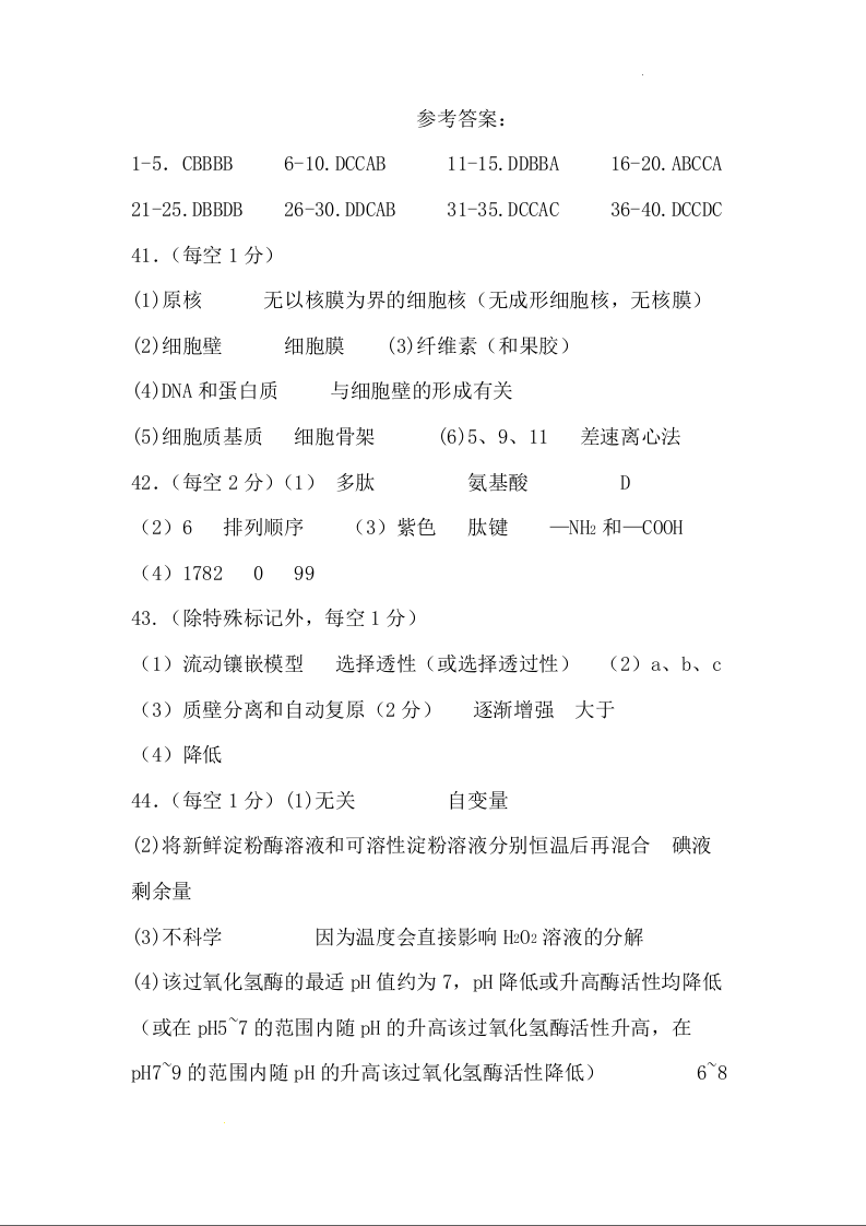 高三生物答案--黑龙江省龙西北八校联合体2023高三上学期开学考