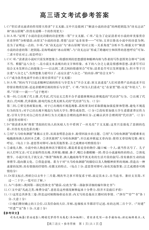高三语文答案--河南省豫南名校2023高三上学期9月质量检测
