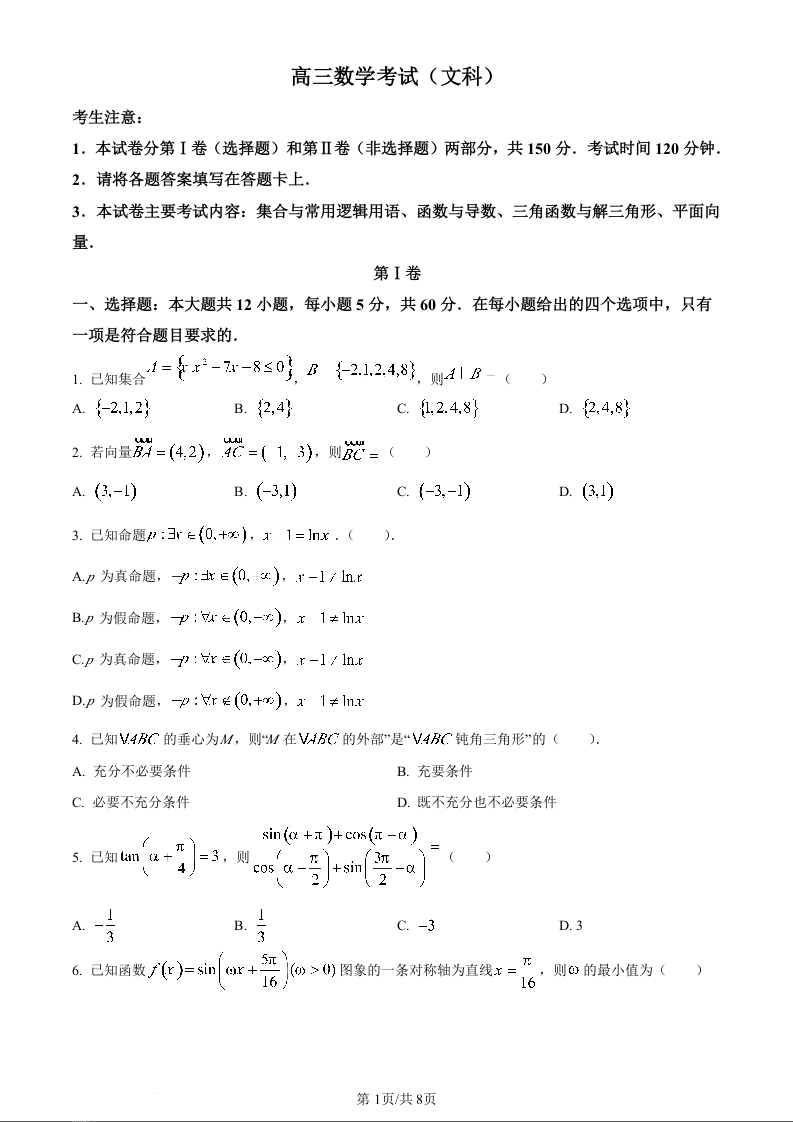 高三文科数学+答案--河南省豫南名校2023高三上学期9月质量检测
