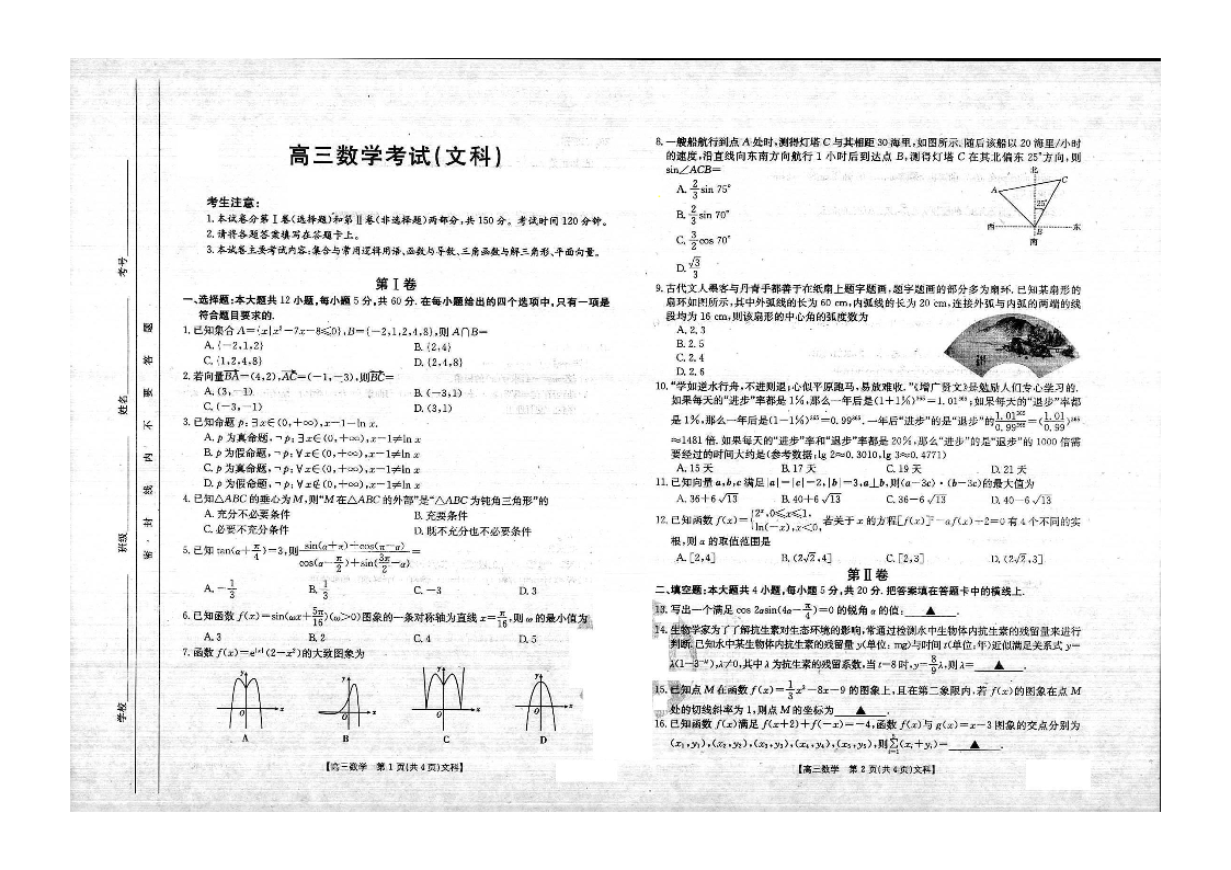 高三文数--河南省豫南名校2023高三上学期9月质量检测