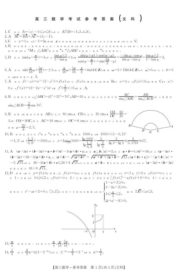 高三数学C文科答案--河南省豫南名校2023高三上学期9月质量检测