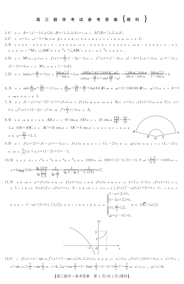 高三数学C理科答案--河南省豫南名校2023高三上学期9月质量检测