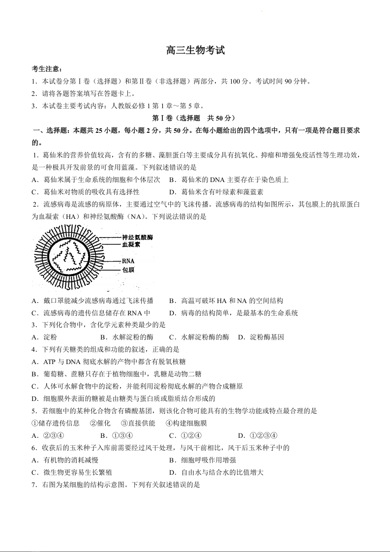 高三生物+答案--河南省豫南名校2023高三上学期9月质量检测