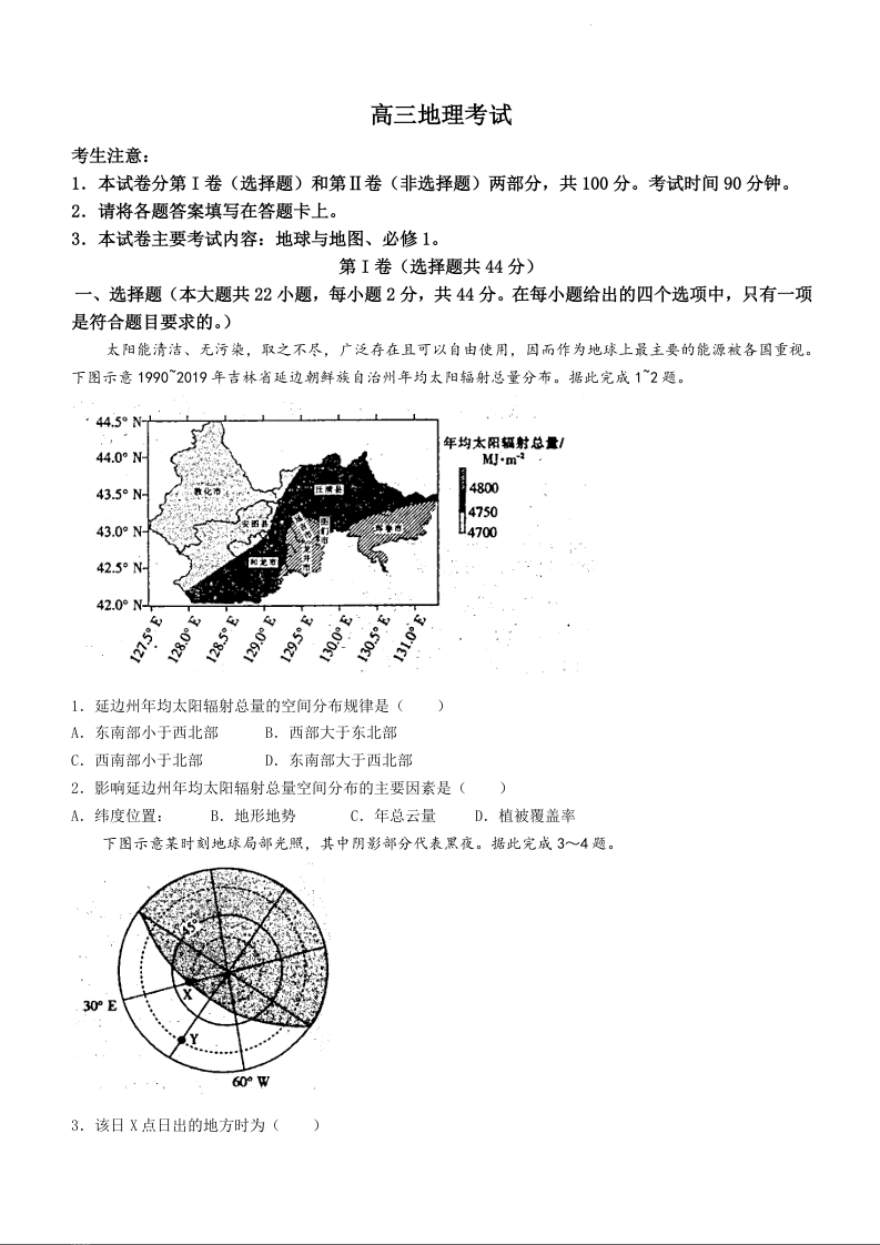 高三地理+答案--河南省豫南名校2023高三上学期9月质量检测