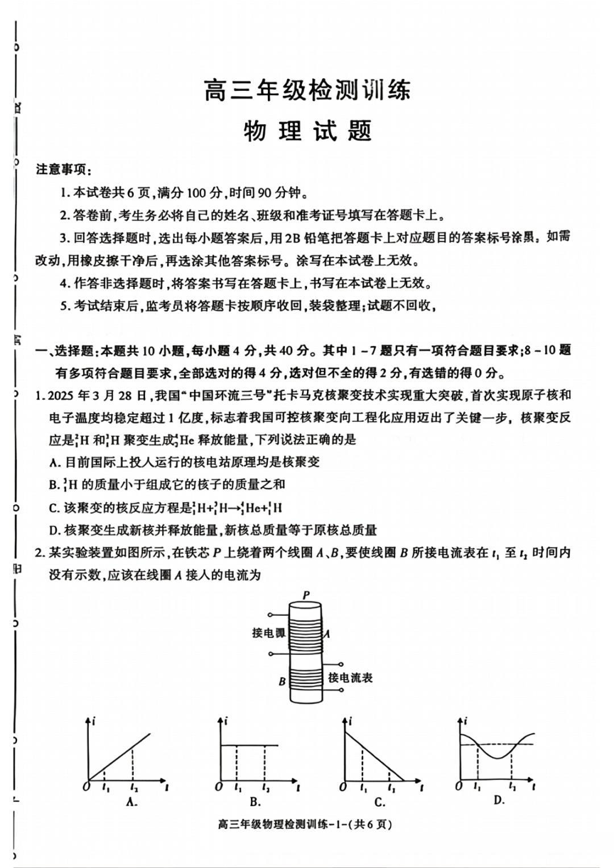 高三物理答案--陕西省榆林市2026届高三年级检测训练(榆林二模)