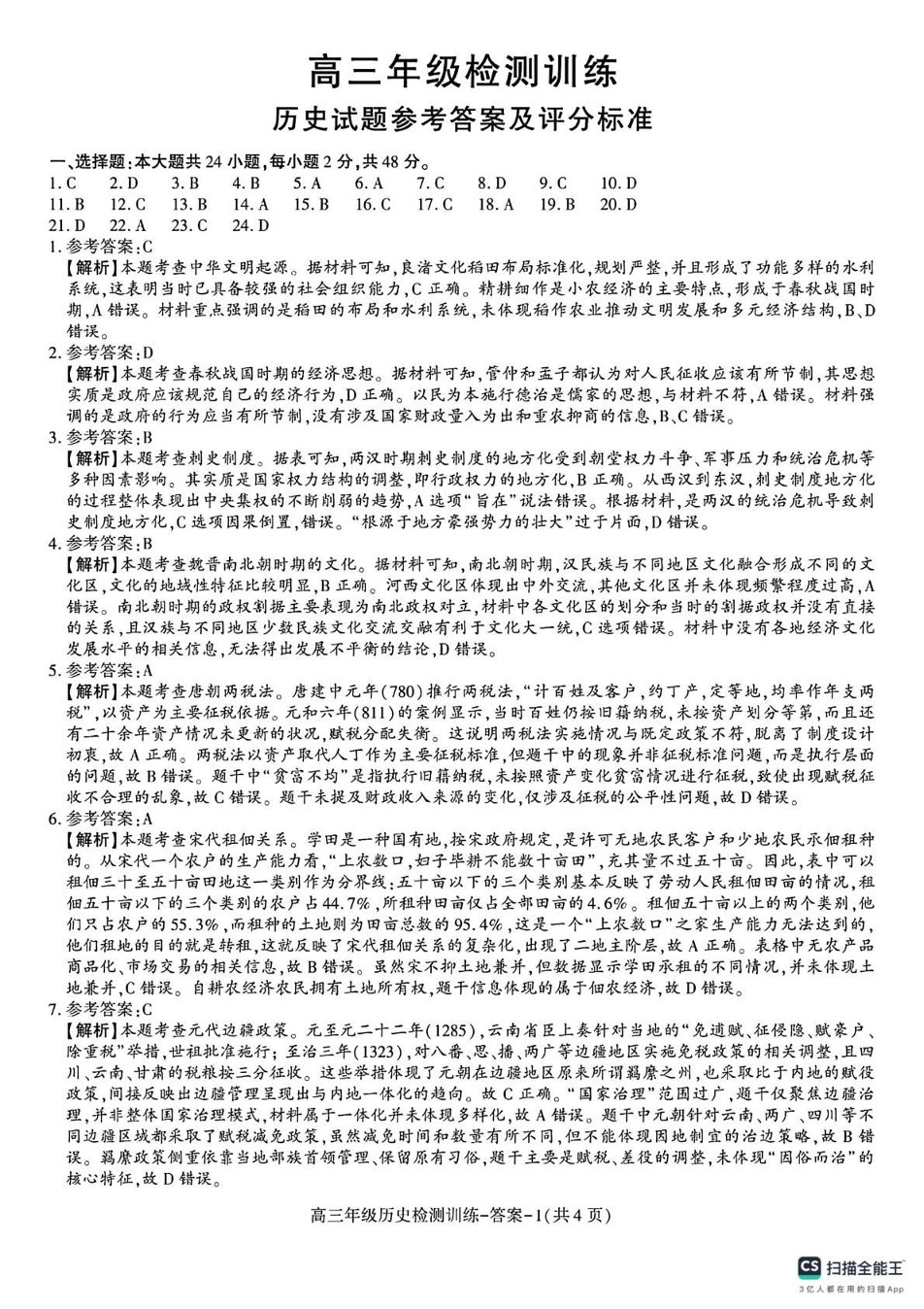 高三历史答案--陕西省榆林市2026届高三年级检测训练(榆林二模)