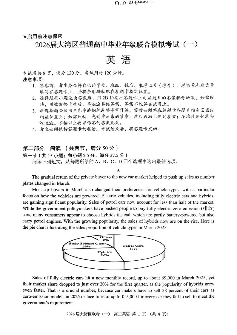 高三英语--广东省大湾区2026届普通高中毕业年级高三年级联合模拟考试(一)(大湾区一模)