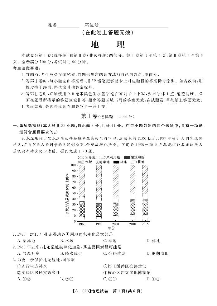 高三地理+答案--安徽省皖江名校联盟2023高三上学期开学考试