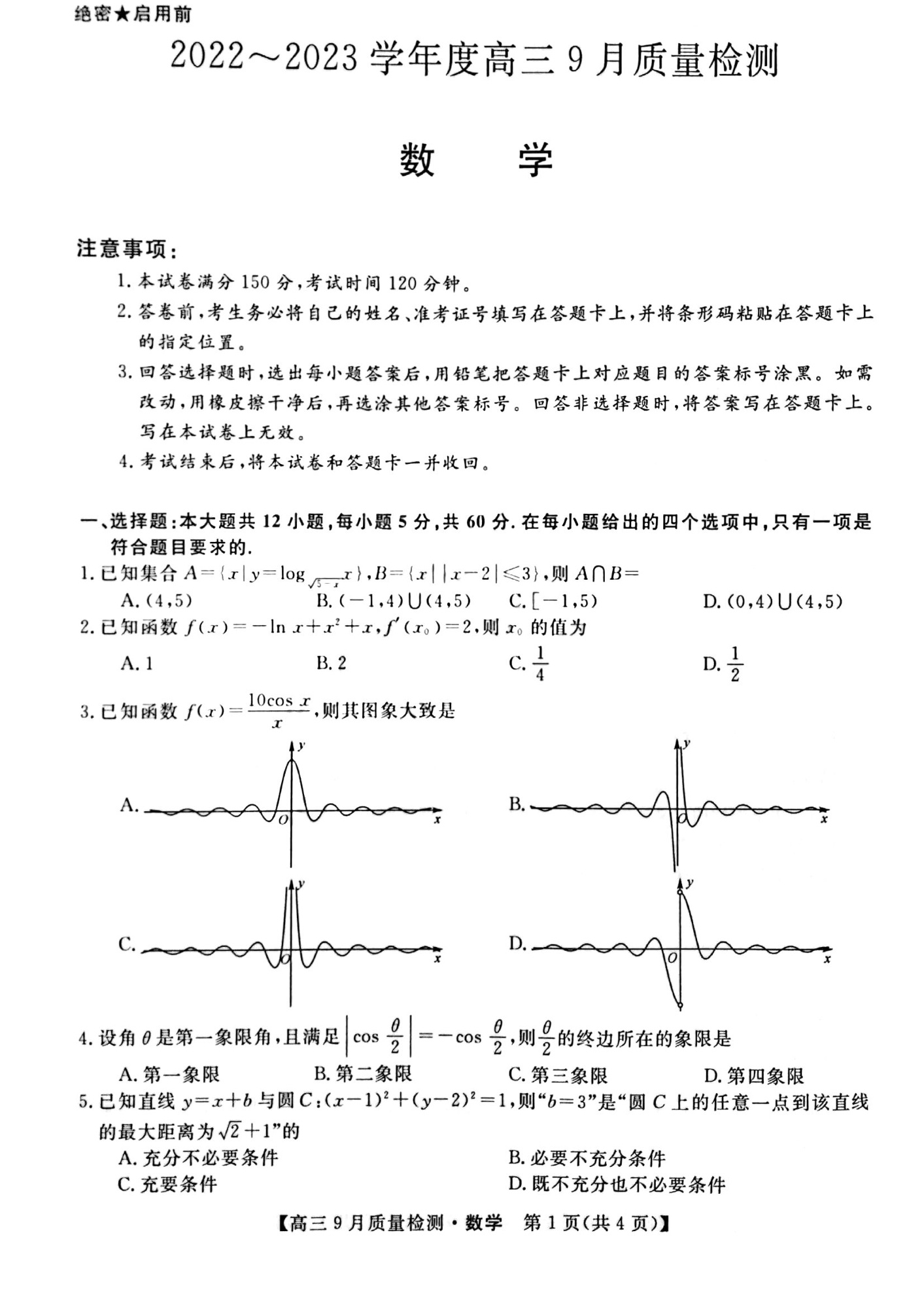 高三数学+答案--金科大联考2022-2023学年度高三9月质量检测