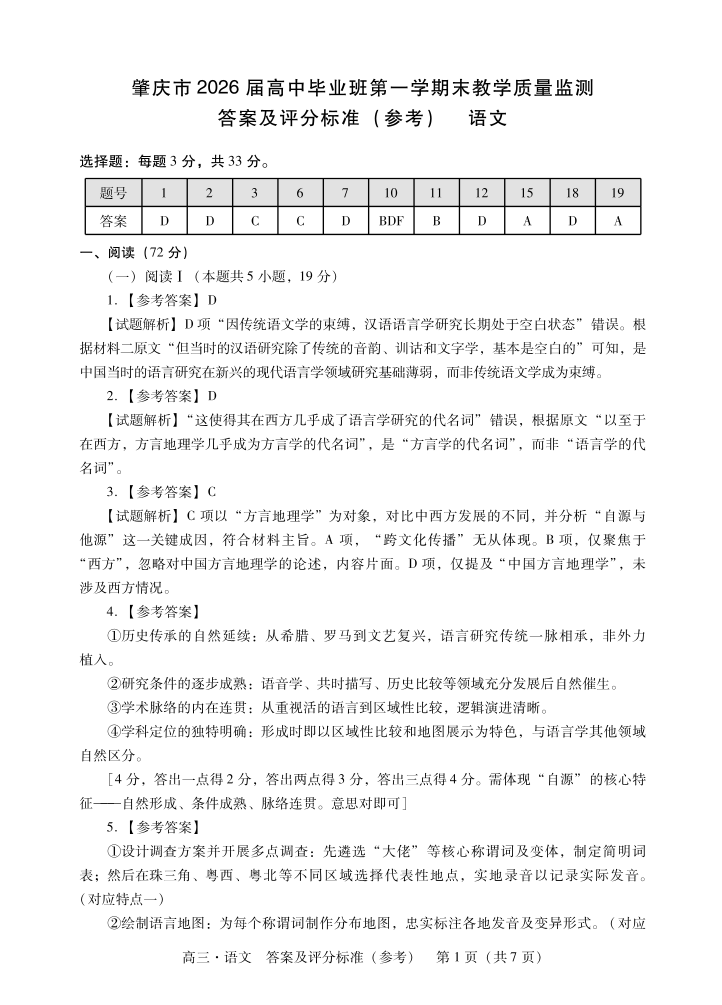 高三语文答案--广东省肇庆市2026届高中毕业班高三年级第一学期末教学质量监测(肇庆二模)