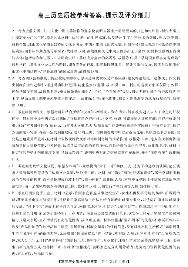 高三历史答案--广东省梅州市2026届高三上学期1月期末考试