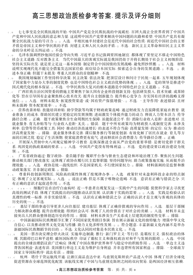 高三政治答案--广东省梅州市2026届高三上学期1月期末考试