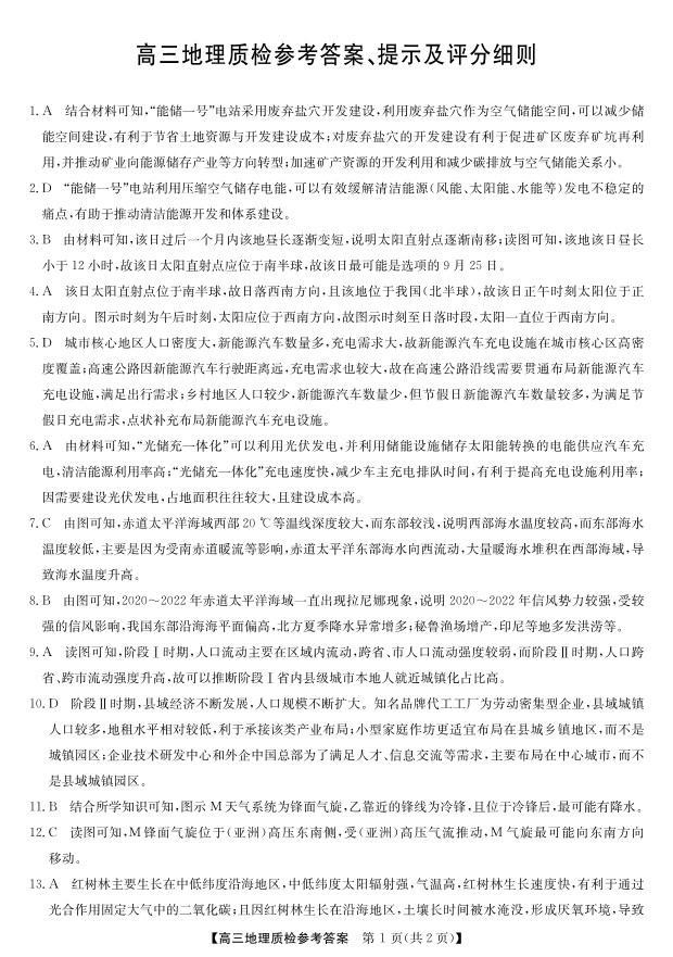 高三地理答案--广东省梅州市2026届高三上学期1月期末考试
