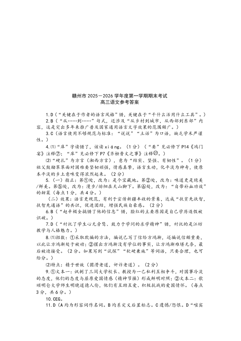 高三语文答案--江西省赣州市2026届第一学期高三上学期期末考试