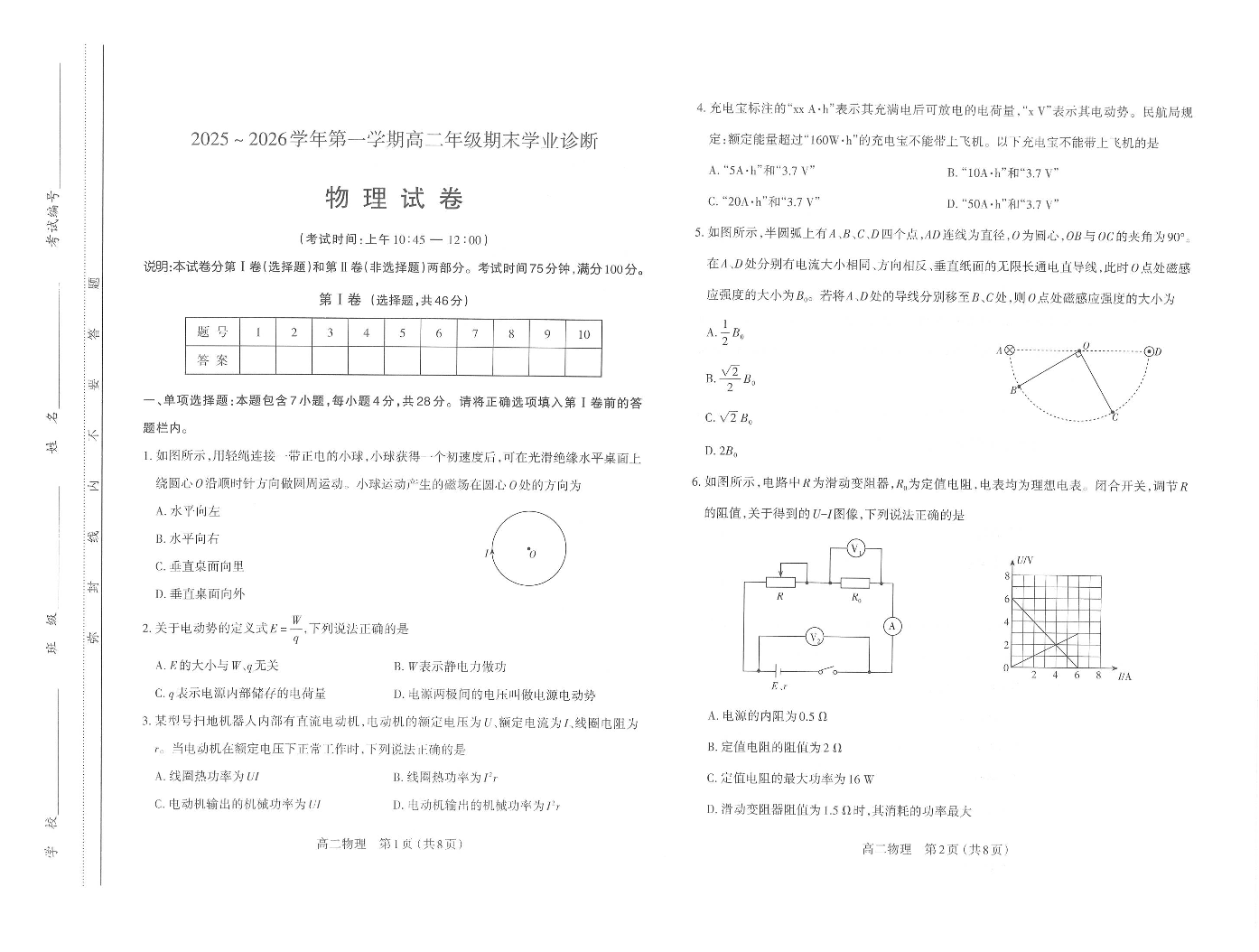 高二物理--山西省太原市2025-2026学年高二上学期期末学业诊断