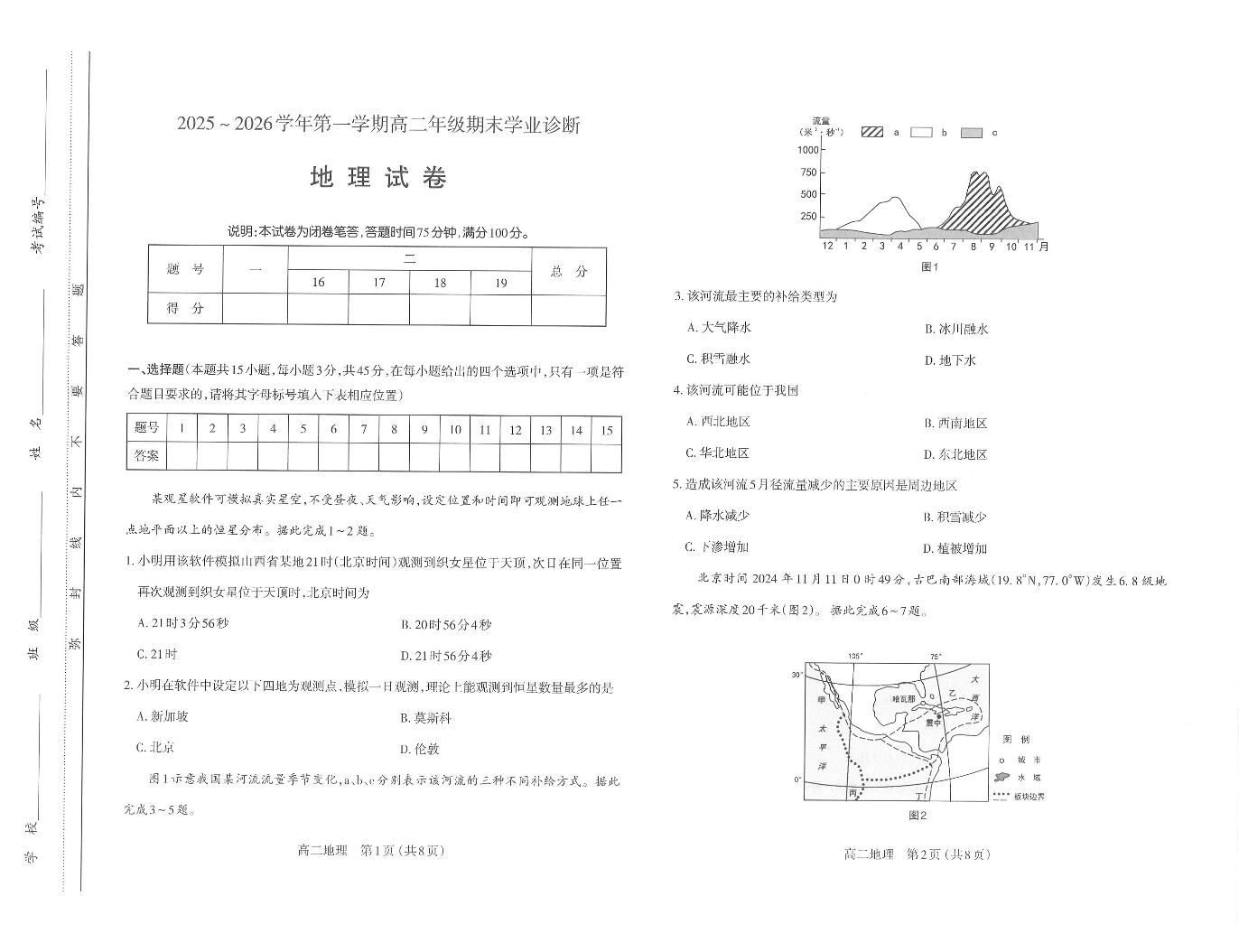 高二地理--山西省太原市2025-2026学年高二上学期期末学业诊断